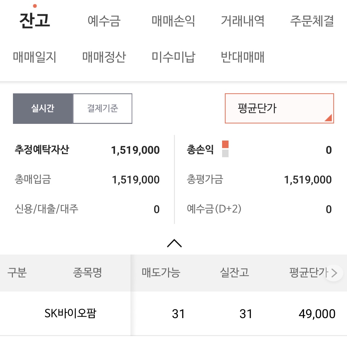 그리고 7월 2일 상장일이 되자 계좌에 31개 49000원 가격으로 입고가 되었다.