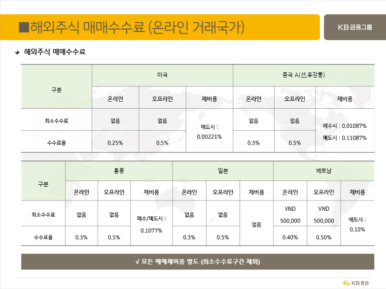 KB증권 해외주식 매매수수료, 단주거래 수수료