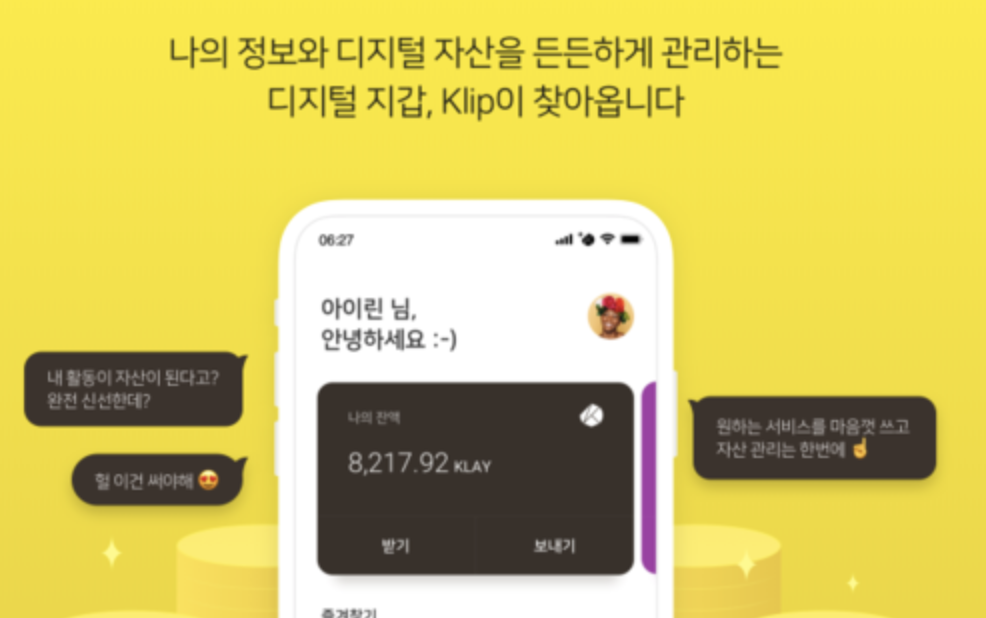 또한 카카오톡에 암호화폐 자산관리 지갑서비스인 '클립'을 운영하고 있습니다.
