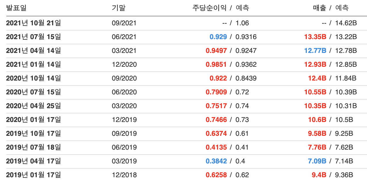 이번에는 주당순이익이었습니다. 어제 7월 15일 발표한 주당순이익을 한번 보세요.