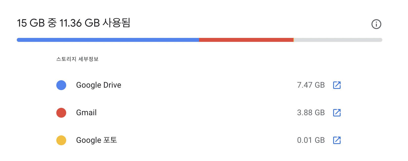 아주 오래전부터 지메일을 사용하고, 구글 포토나 구글 드라이브를 사용하다 보면 어느새 이렇게 많은 용량을 사용하고 있다는 것을 알게 됩니다. 문제는 무슨 자료가 얼마나 있는지 조차 알 수 없다는 점이고, 사실 오래된 자료를 다시 검색해서 찾을 일도 그다지 많지 않다는 점입니다.