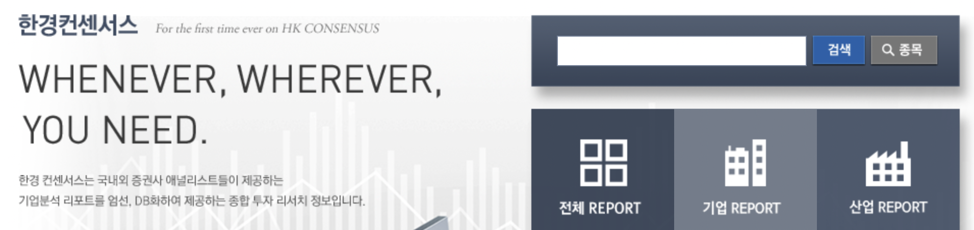 네이버나 다음에서 "한경 컨센서스"라고 검색하면 사이트 검색이 되므로 해당 사이트로 접속하면 됩니다.