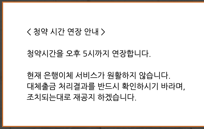 오늘 카카오뱅크와 한화플러스 제2호스팩 청약 마지막 날입니다. 카카오뱅크를 청약할지, 한화플러스 스팩을 청약할지 고민도 하고, 나누어서 하는 분들도 있는 것 같은데 한화투자증권 입금이 몇 시간째 이루어지지 않고 있습니다. 한화투자증권 홈페이지에는 아래와 같은 메시지만 나오고 있습니다.