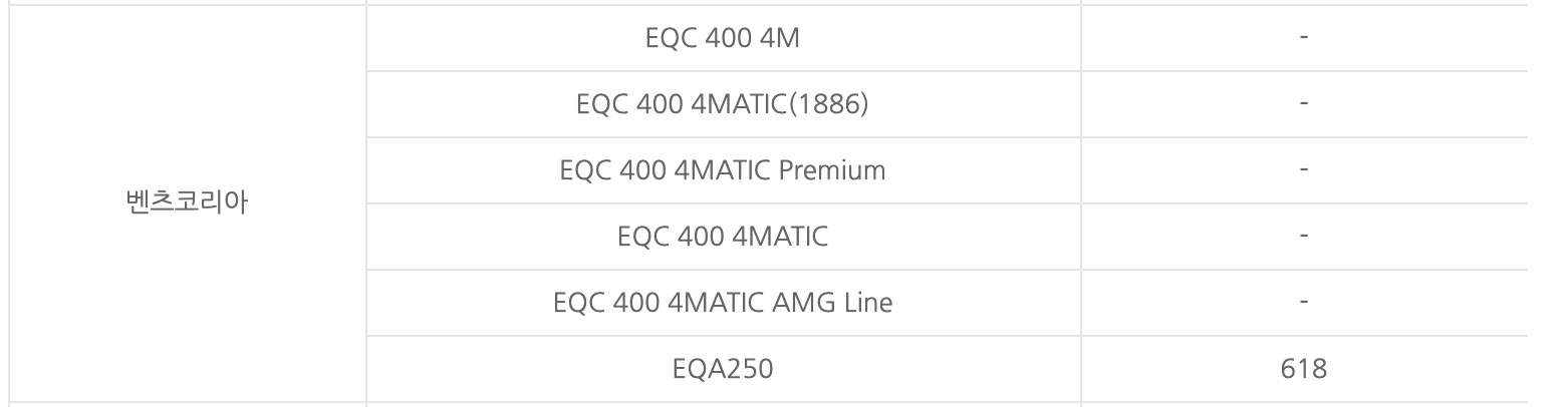 벤츠 EQA250 국비 618만원 지원이 된다는 내용은 링크에서 확인할 수 있고, 해당 부분 캡처는 아래에서 볼 수 있습니다. 앞으로 나올 전기차 모델명이 적혀 있고, 현재 EQA에 대한 내용만 국비가 정해졌네요. 앞으로 나올 차들도 기대가 됩니다.