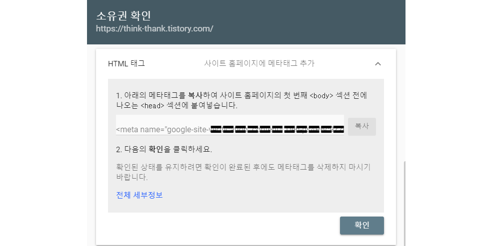 구글 서치 콘솔에 등록한 메타정보 google-site-verification 정보 등록과 네이버 서치 어드바이저 웹마스터 도구에 등록한 블로그 메타정보를 백업받아 새로운 스킨에 반영