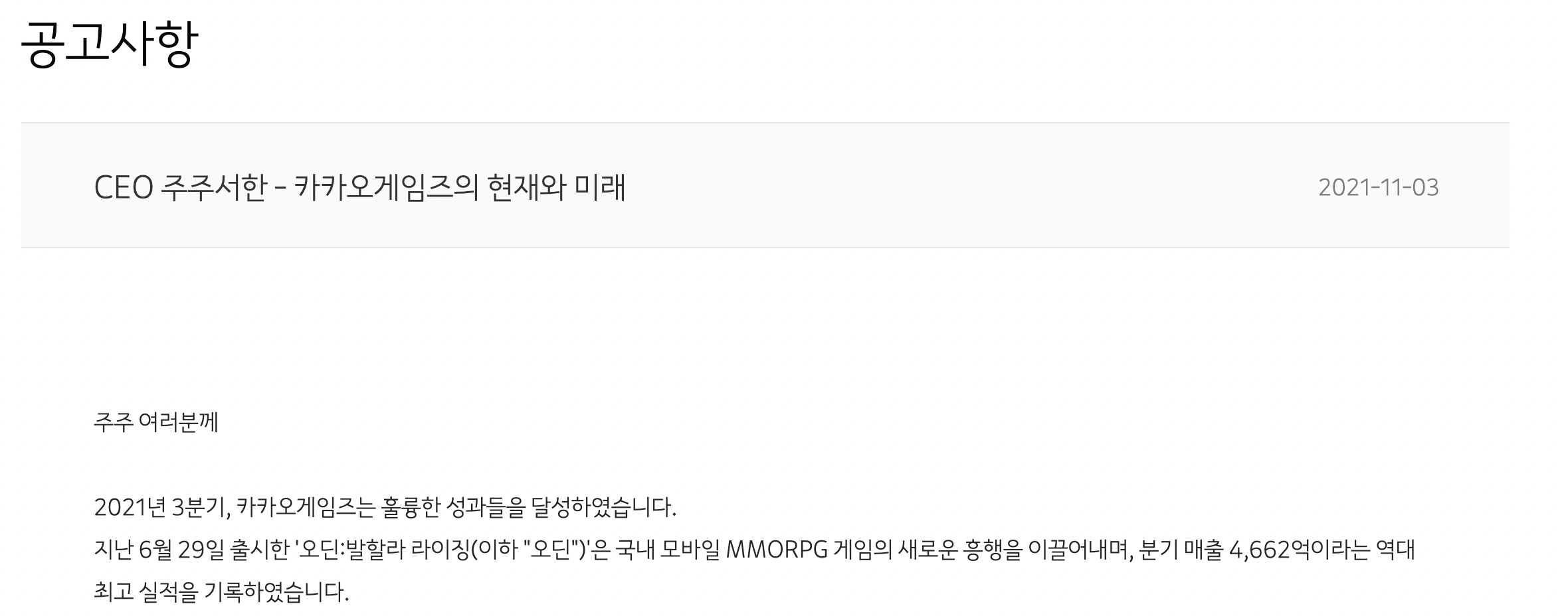 카카오게임즈 주주서한 원문