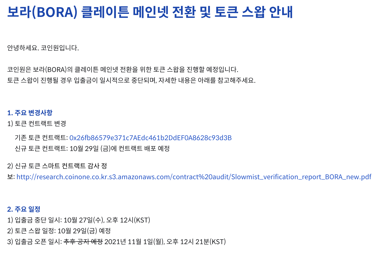 하지만 보라코인의 클레이튼 메인넷 전환 일정이 나온 걸 보니 클레이튼과 관련이 없는 것은 아니었습니다.