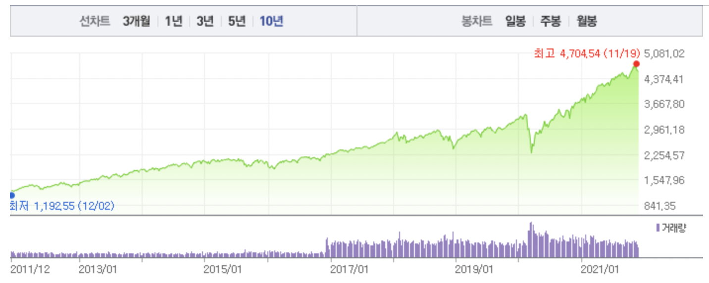 사실 미국시장에미국 시장에 투자할 것인지 한국시장에 투자할 것인지에 대해서는 이견이 있을 수는 있지만 저는 미국 시장에 어떤 형태든 투자하는 것이 바람직하다고 보이고, 종목을 직접 투자하는 방식도 좋지만 이렇게 ETF를 통해 분산투자를 하는 것이 좋다고 보입니다.