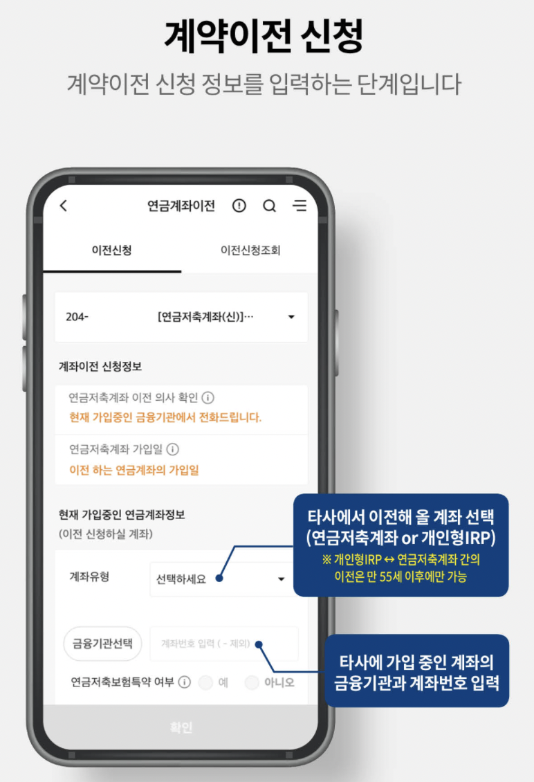 개인연금 계좌개설 및 계약이전 신청 가이드