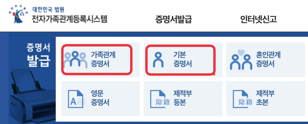 기본증명서 발급방법 / 가족관계 증명서 발급방법