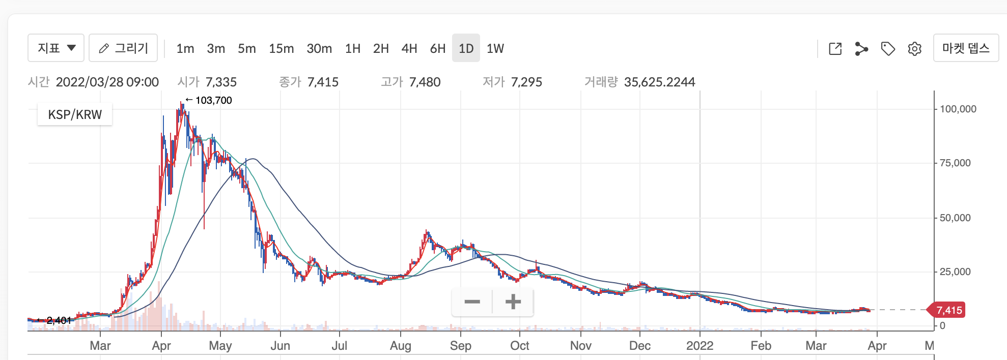 하지만 이자를 클레이스왑 ksp로 받기 때문에 ksp 가격이 떨어지면 손해일 수 있습니다. 그리고 최근에는 많이 떨어지기도 한 것이 사실입니다.