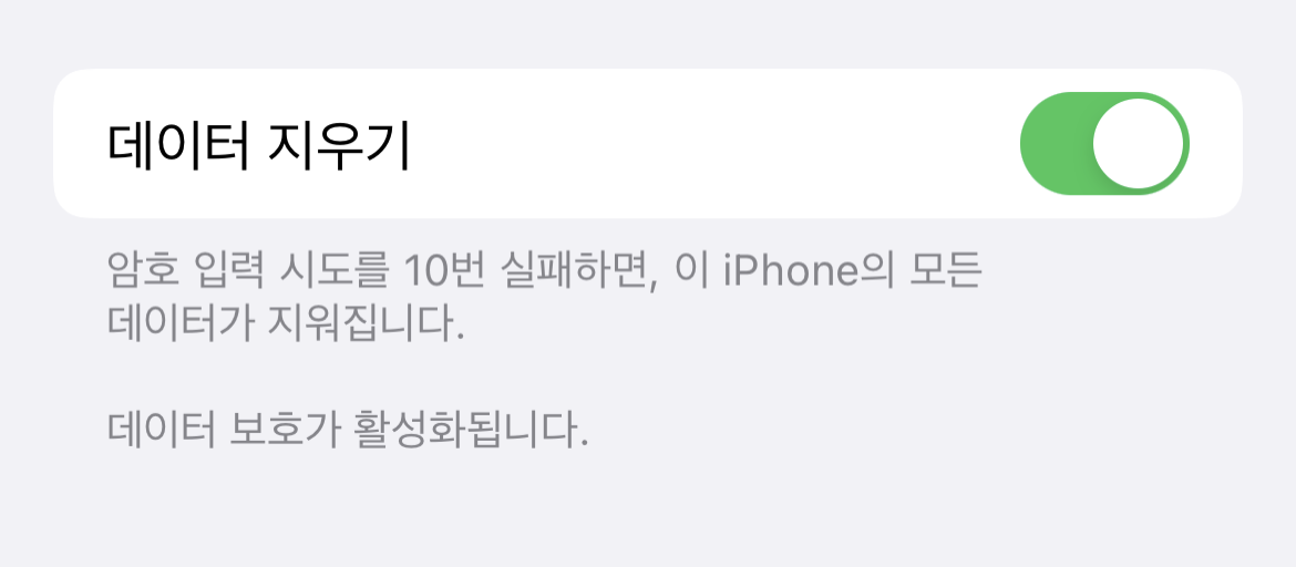 - 10회 이상 암호가 틀리면 완전 삭제가 되도록 설정하는 것