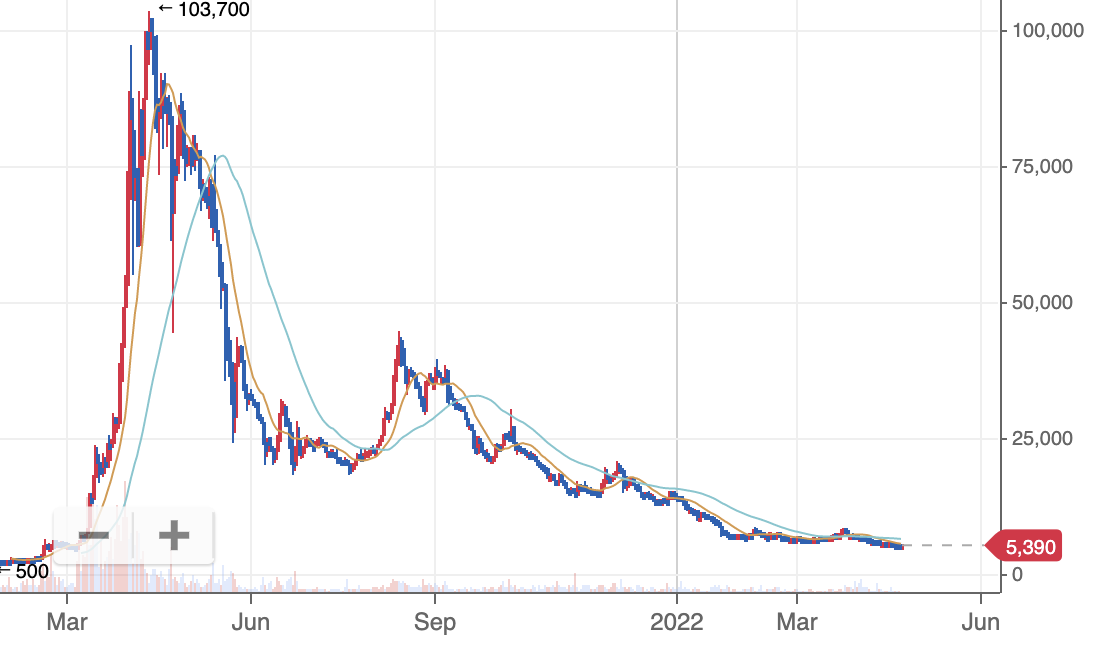 클레이스왑 klayswap 가격이 5천 원 초반으로 내려간 상황입니다. 과거 고점인 10만 원대에 매수한 사람들은 현재 20토막이 났다고 볼 수 있습니다. 아주 극초반에 진입한 사람이 아니라면 거의 모든 투자자가 손실을 겪고 있다고 보입니다. 그러면 기존 투자자는 어떻게 대응하고 있는지, 그리고 이제 투자하려는 사람들에게 기회인지 한번 살펴보겠습니다.