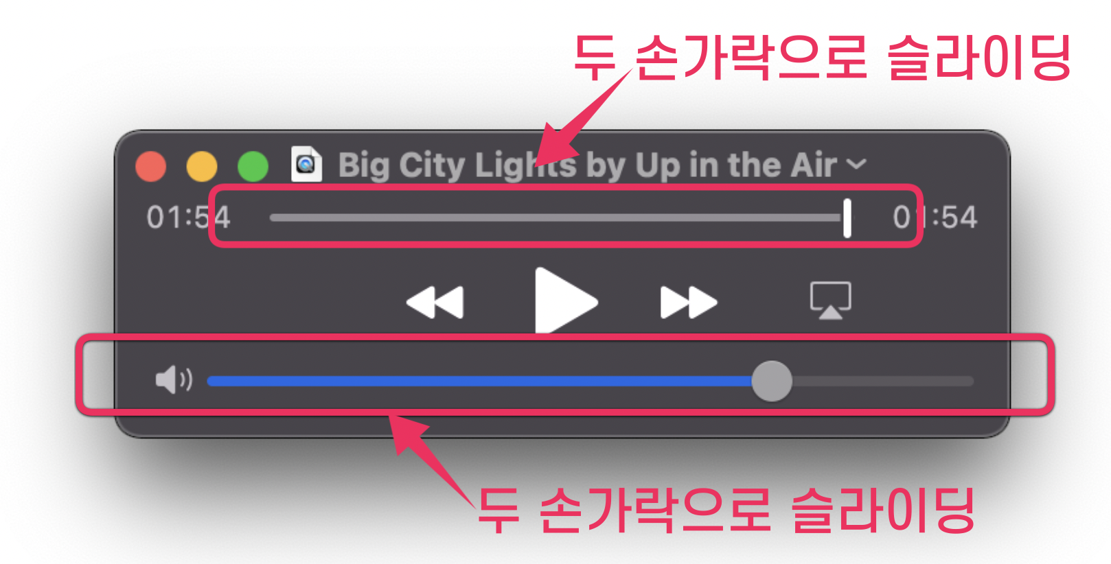 맥에서 음악 앱을 열면 빠른 이동이나 볼륨 조정 등을 키보드로 하고 싶은데 잘 안됩니다.