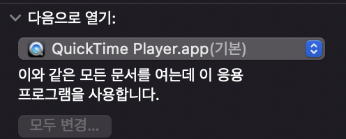 저는 여기에서 퀵타임 플레이어 앱으로 설정을 해두었습니다.
