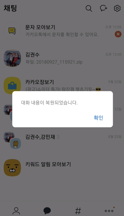 카카오톡 백업, 새로운 기기로 복원 하는 과정을 거쳐야 합니다.