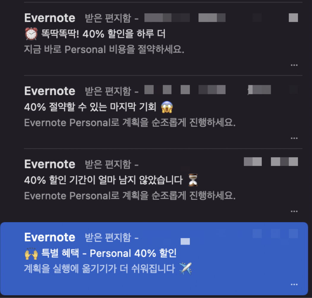 그동안 알게 모르게 에버노트는 40% 할인 기회를 많이 주었다.