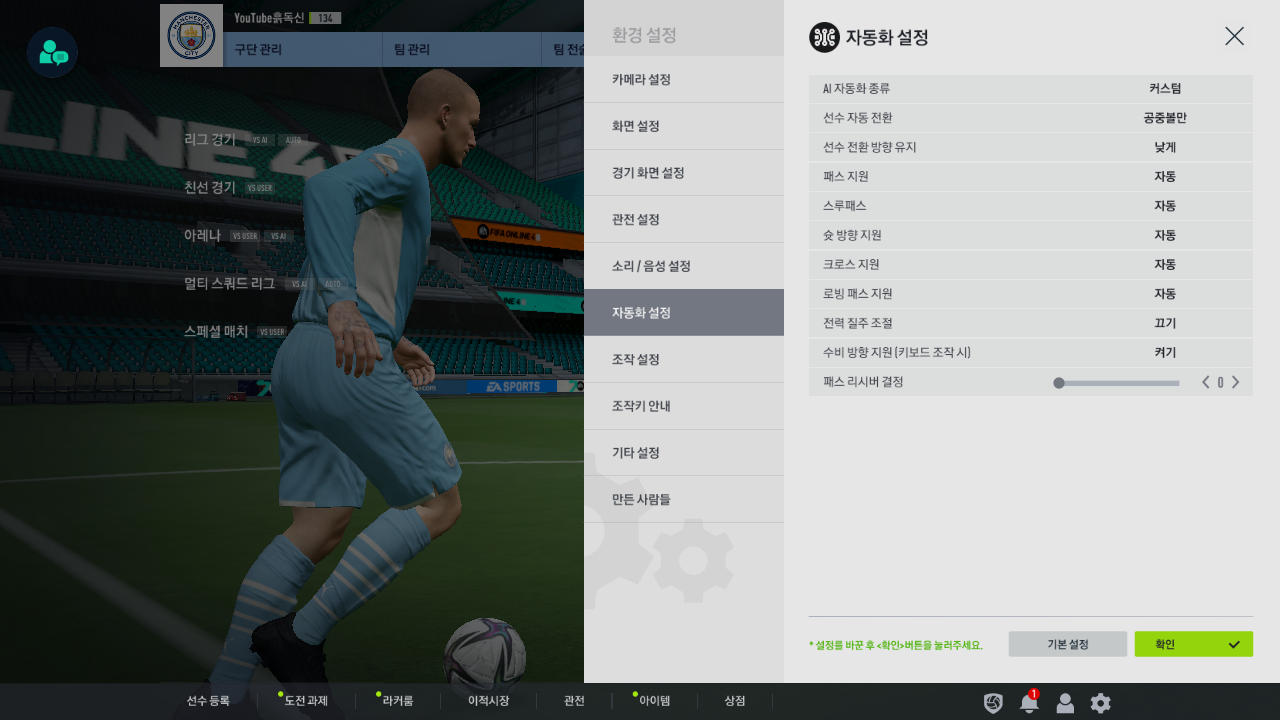 피파 온라인 4 PC에서 하다 보면 튕기는 경우도 있고, 속도가 빠르지 않은 경우도 있습니다. 느린 PC에서도 잘할 수 있도록 세팅한 내용을 공유합니다. 최적화 세팅을 통해 최대한 느린 PC에서도 원활한 플레이가 되도록 FIFA 4를 세팅해 봅시다. 더불어서 제가 사용하고 있는 FIFA 설정도 참고로 소개하겠습니다.