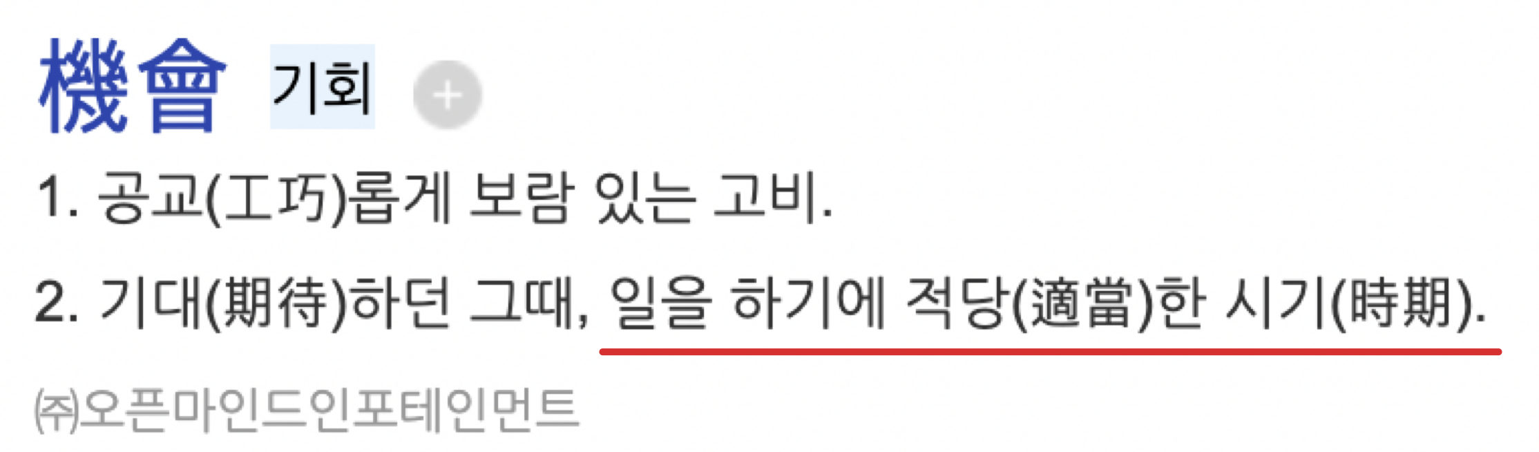 그런데 일을 하기에 적당한 시기를 말하는 기회도 위기에서 사용한 똑같은 한자 "기"를 사용한다.