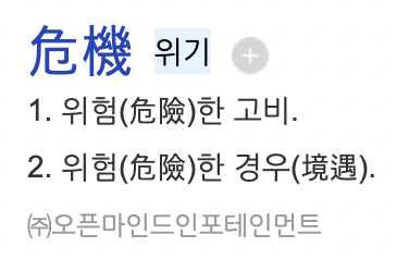 위기의 사전적 정의는 "위험한 고비"를 말한다.