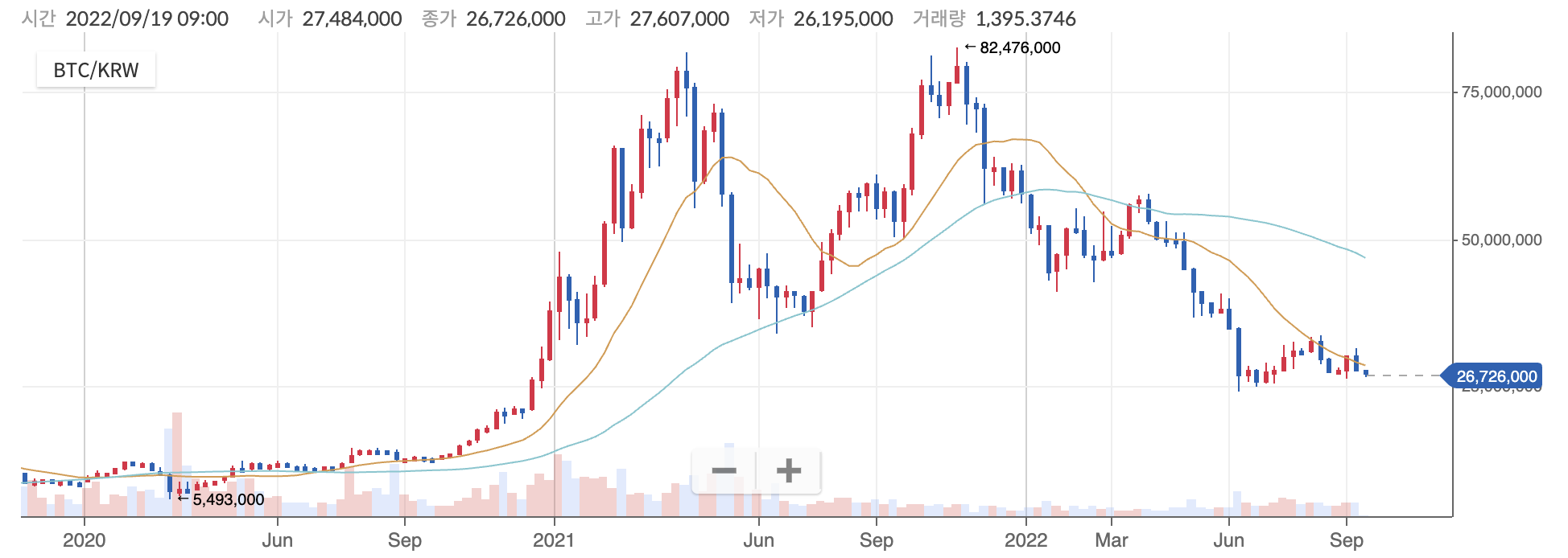 부동산과 주식, 그리고 암호화폐가 모두 최악의 상황으로 치닫는 것 같다. 비트코인 주봉을 보니 현재 위치는 2천6백만 원대이고, 시장은 더 빠질 것 같은 공포에 휩싸여 있는 듯하다. 금리는 계속 오르고 있고 경기는 상황이 좋지 않다. 우크라이나 전쟁은 언제 끝날지 모르는 상황이다. 시장은 위기 상황이다.