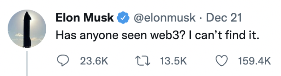 일론머스크는 웹3.0은 마케팅 용어일 뿐 그 이상도 이하도 아니다고 이야기 하는 것입니다.