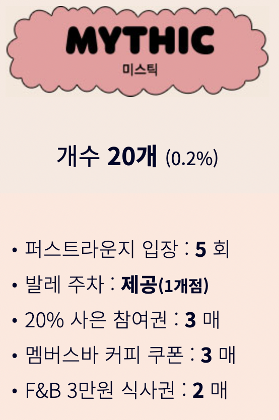 등급별 혜택을 살펴보면 아래와 같습니다.