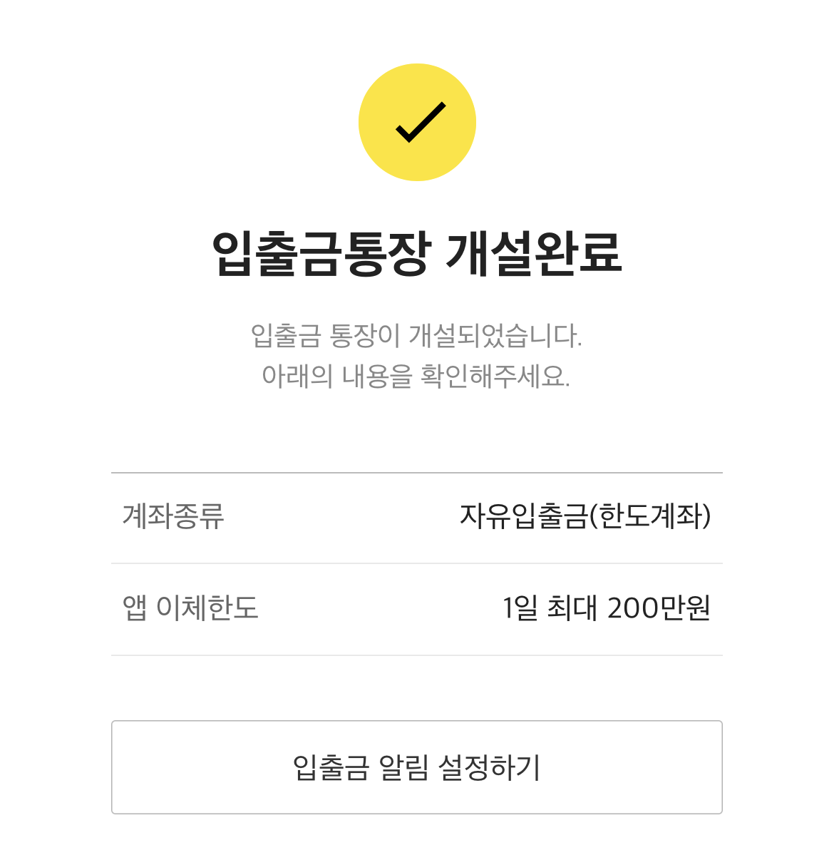 그럼 아래와 같이 입출금 통장 개설이 완료가 됩니다.