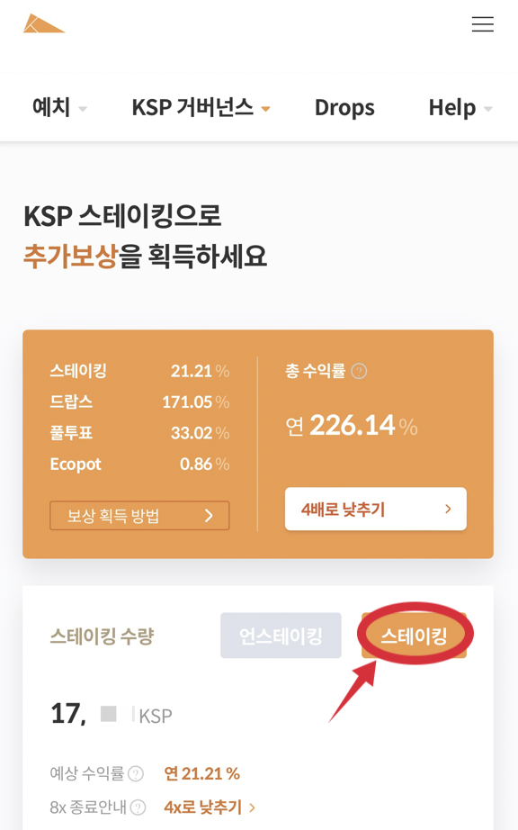 - ksp 이자 수익(스테이킹에 따른 수수료) : KSP 코인으로 받음