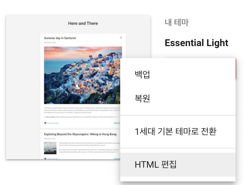 테마의 네 테마에서 html 편집으로 들어갑니다.
