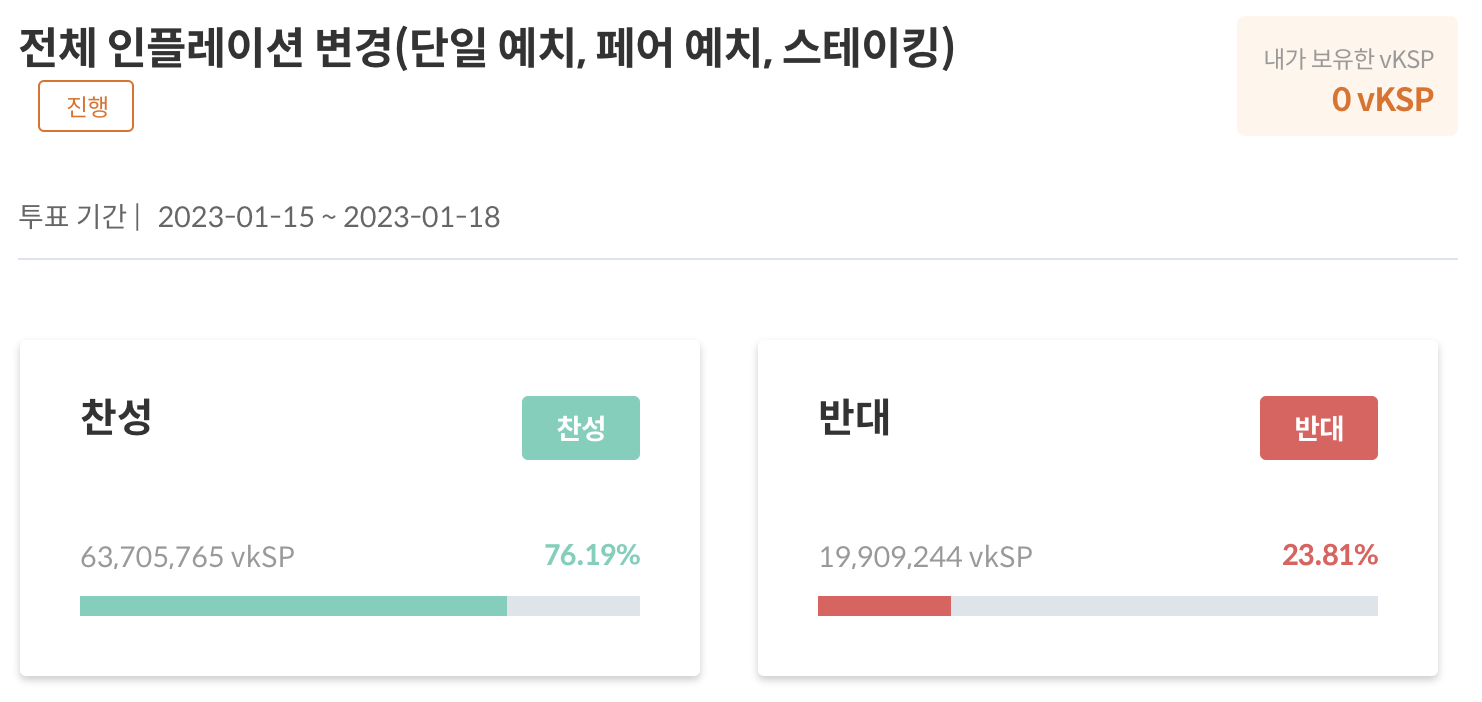 하지만 현재 투표 중인 인플레이션 분배율 변경 안건은 유동성 공급자가 분배받는 KSP 비율의 급격한 변화를 가져옵니다.