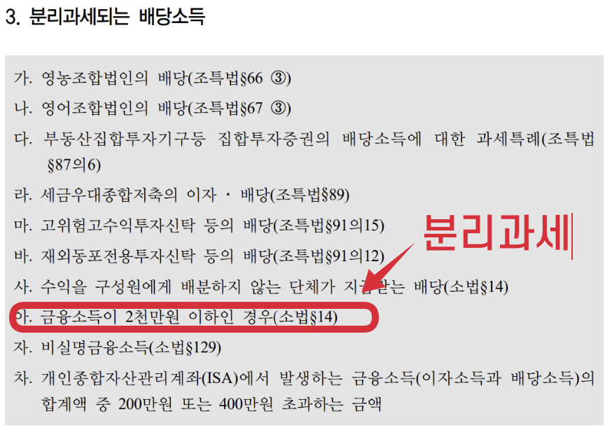 - 연금소득 및 분리과세에 해당하는 금융소득종합과세 대상이 아닌 금융소득(2,000만 원 이하의 이자와 배당),