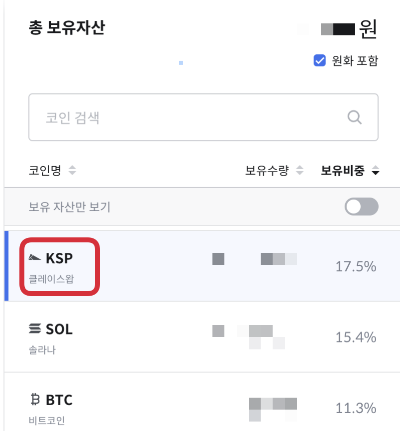 이렇게 ksp를 잘 보냈다면 클레이스왑 홈페이지에 Asset에서 입금된 것을 확인할 수 있습니다.