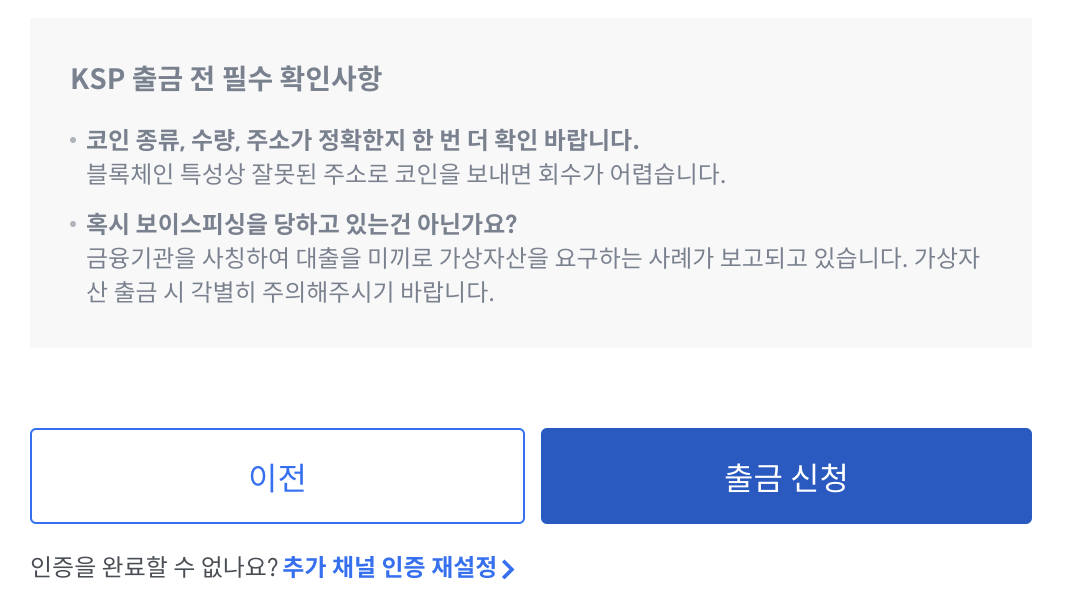 그러면 다시한번 출금 진행 확인을 하게 됩니다.