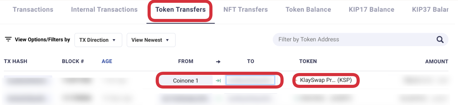그럼 아래와 같이 Token Transfers에서 Coinone1 >> 내지갑주소 로 보내진 ksp를 알 수 있습니다.