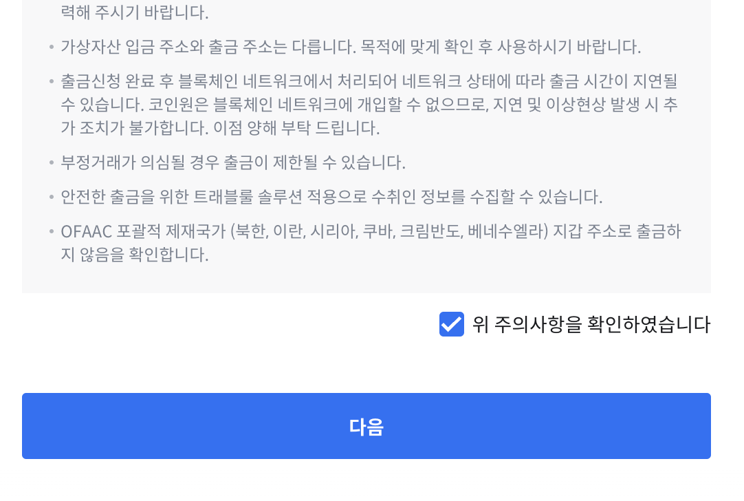 지갑주소가 등록되지 않은 경우 일 100만원 이하만 전송가능합니다.