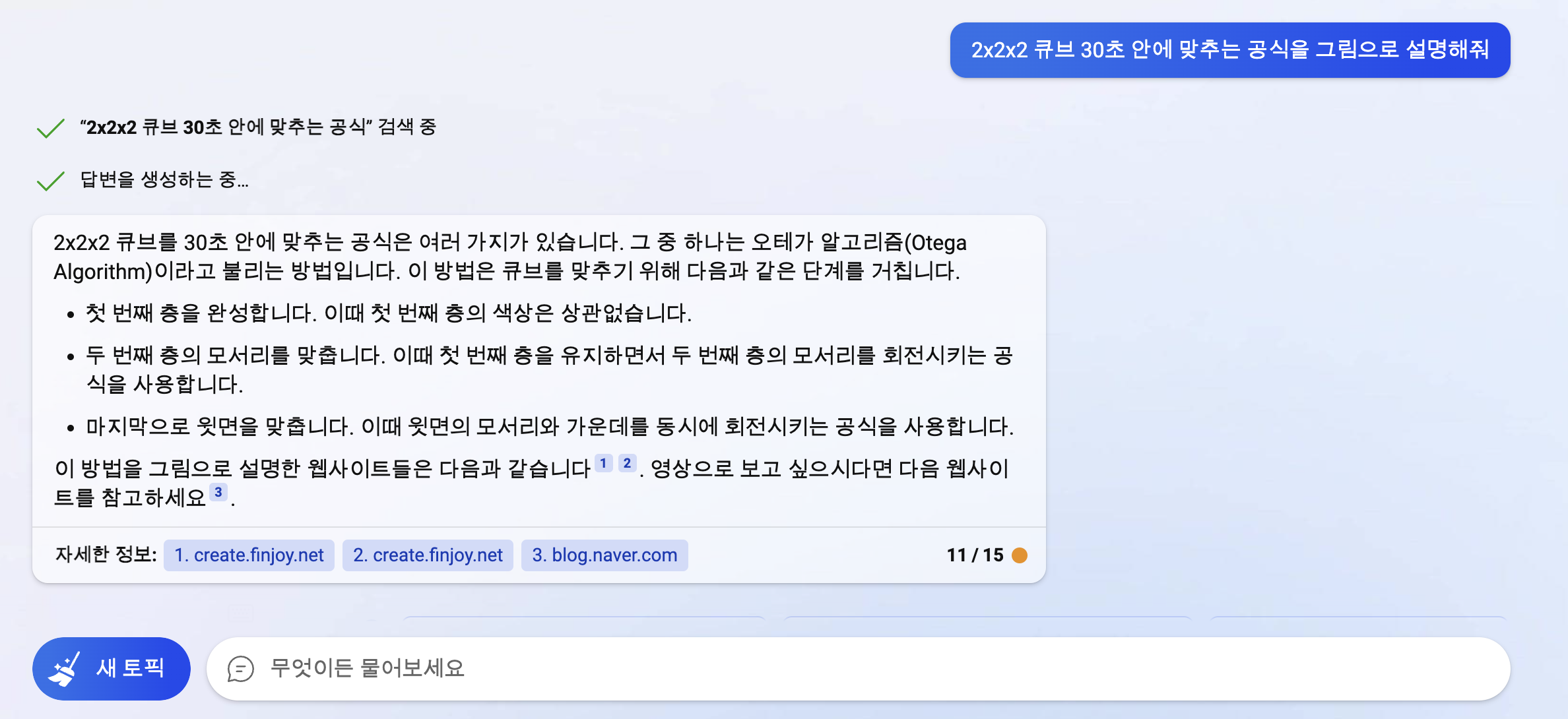 채팅 형식으로 물어보면 내용을 알려주는데, 해당 내용에 대한 근거 출처 링크를 아래와 같이 알려주니, 직접 들어가서 이것이 맞는 정보인지 여부를 확인할 수 있게 되어 있네요.