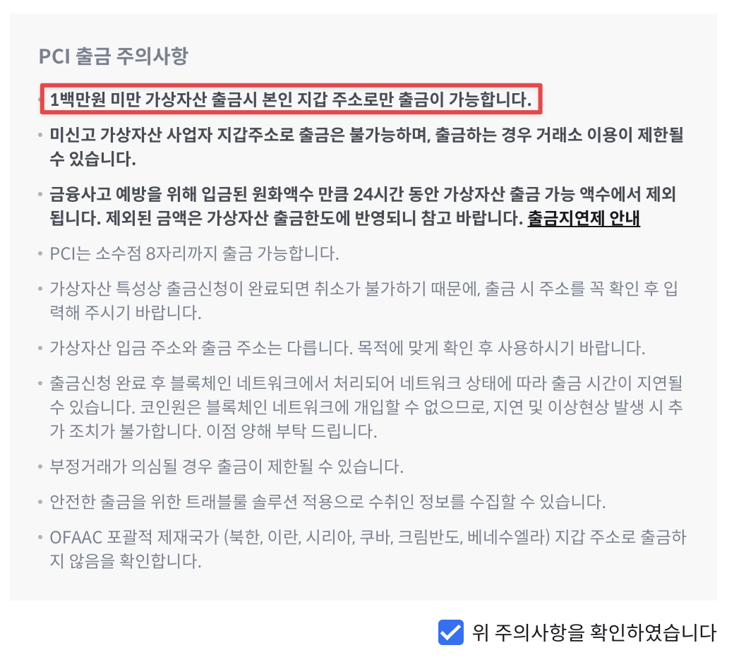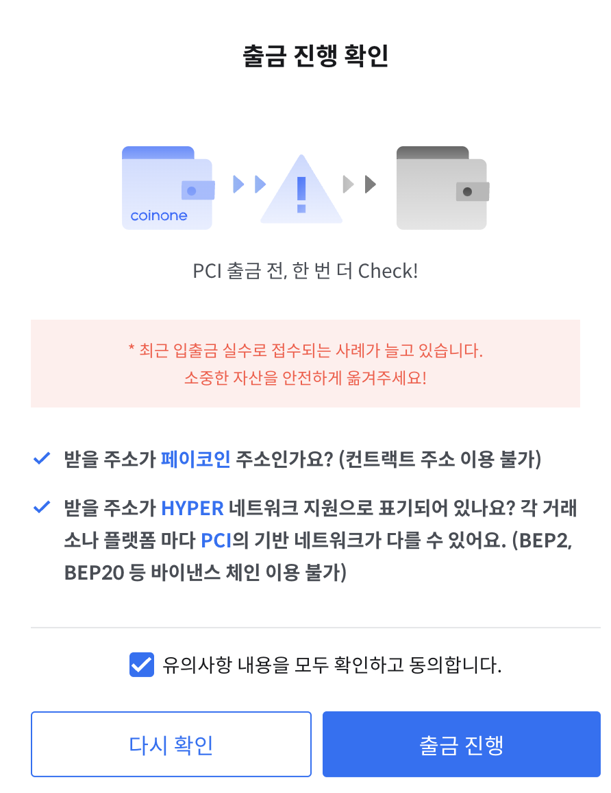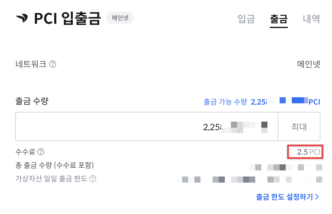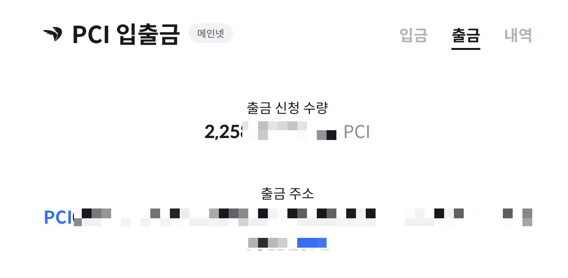 먼저 코인원 홈페이지나 앱에서 출금으로 들어가서 PCI를 선택합니다.