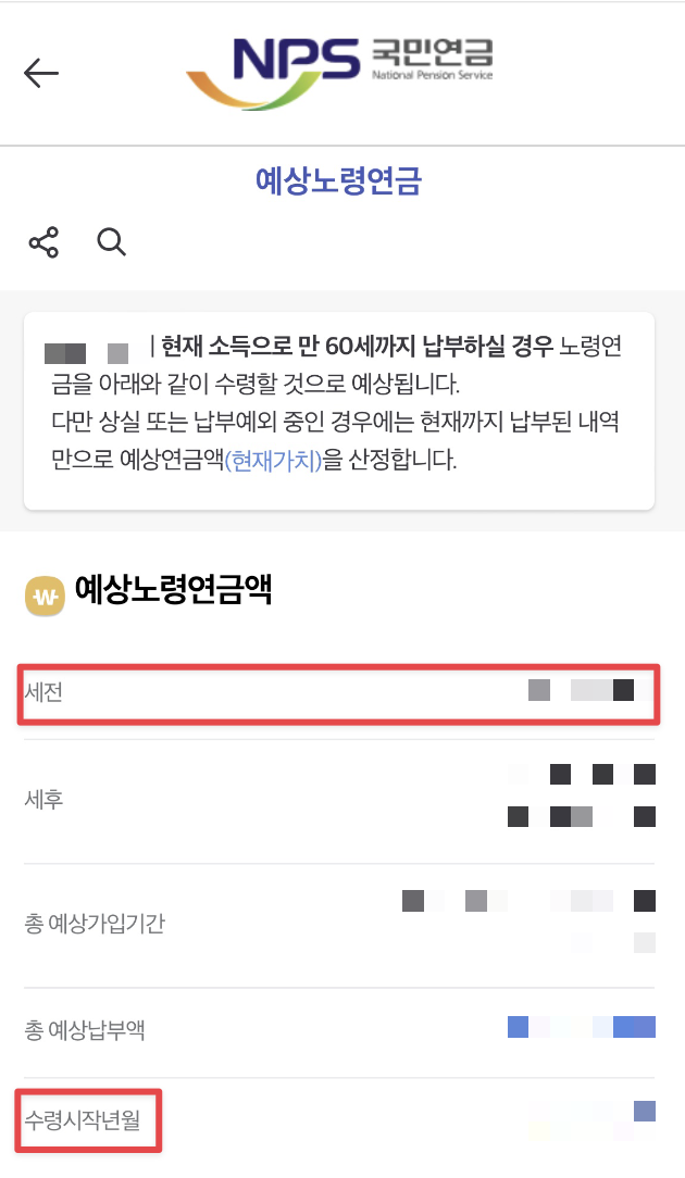수령시작년월은 내가 수령할 수 있는 때를 알려줍니다.