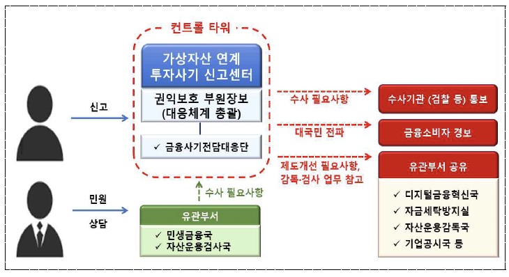 - [민원·신고] - [불법금융신고센터] - [가상자산 연계 투자사기 신고센터] - [신고하기]