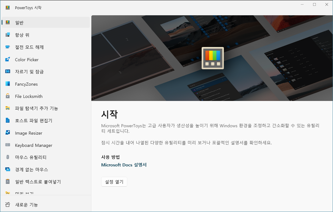 실행 파일 또는 패키지 관리자(WinGet, Chocolatey, Scoop)를 사용하여 Windows를 사용자 지정하기 위한 유틸리티 세트인 PowerToys를 설치합니다.
