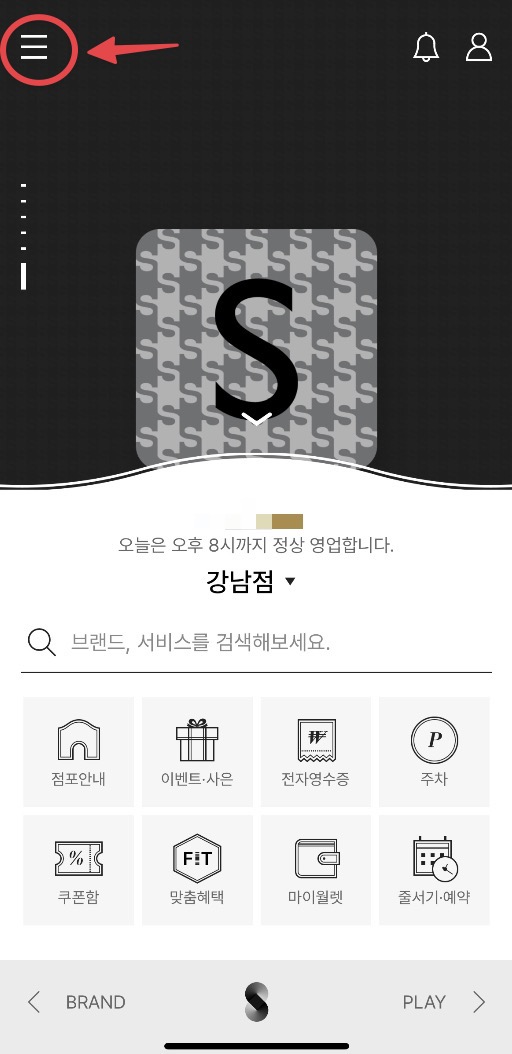 먼저 신세계 앱을 다운로드 한 후 로그인하고, 첫 화면으로 들어갑니다.