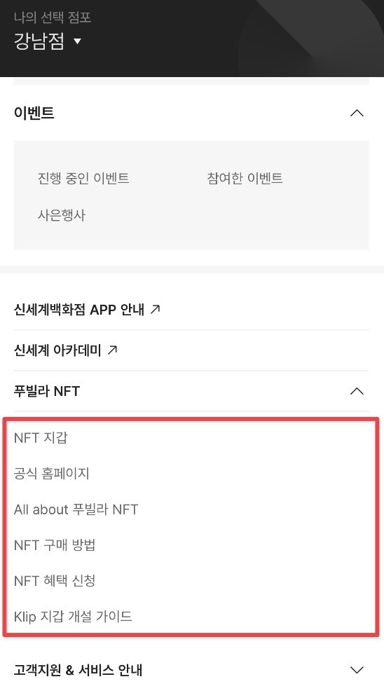 아래와 같이 NFT 혜택 신청 메뉴를 클릭하면 되니다.