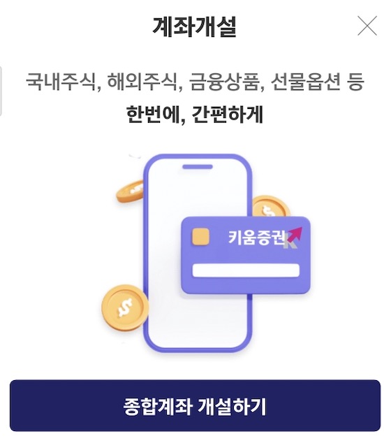 이런 혜택을 받기 위해서는 키운 비대면 종합계좌를 만들어야 합니다.