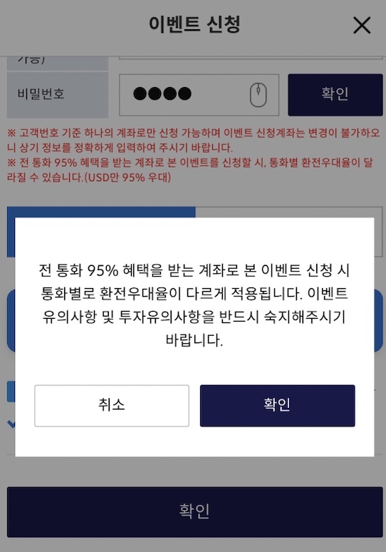 거래수수료 이벤트, 환전수수료 95%인하 이벤트 신청하기