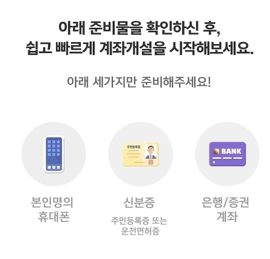 본인명의 휴대폰, 신분증, 은행/증권 계좌