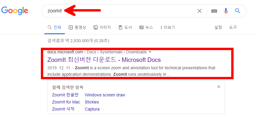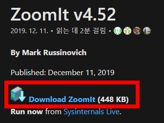 구글에서 zoomit을 검색해서 제일 상단에 나오는 주소에서 파일을 다운로드 받습니다.