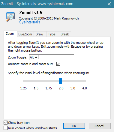 맨 아래 Run ZoomIt when Windows starts 에 체크하면 윈도우 켤 때마다 자동으로 실행됩니다.