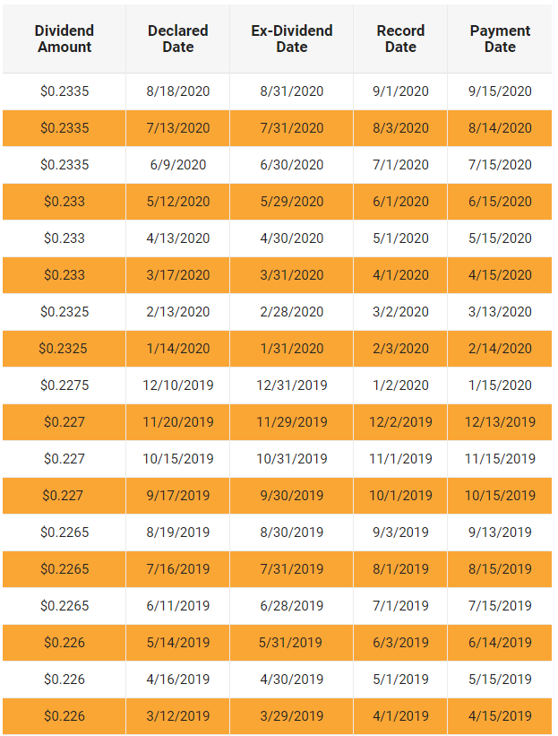 현재 한 주당 약 0.2335달러를 배당합니다.